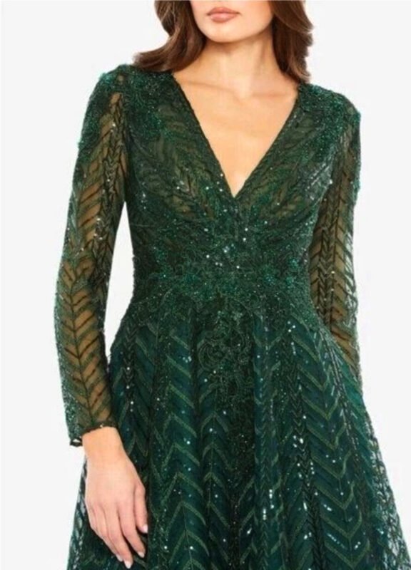 Leena For Mac Duggal 55682 V-Neck Illusion Long Sleeve Chiffon Gown – Size 14