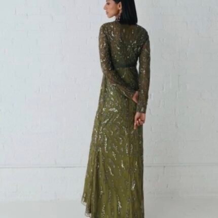 Mac Duggal Rose Gold Faux Wrap Sequin Cut Out Back Gown Size 12 5390