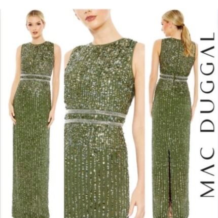 IEENA For MAC Duggal 11787 Quarter Sleeve Crystal Neck Feather Gown Black – Size 10