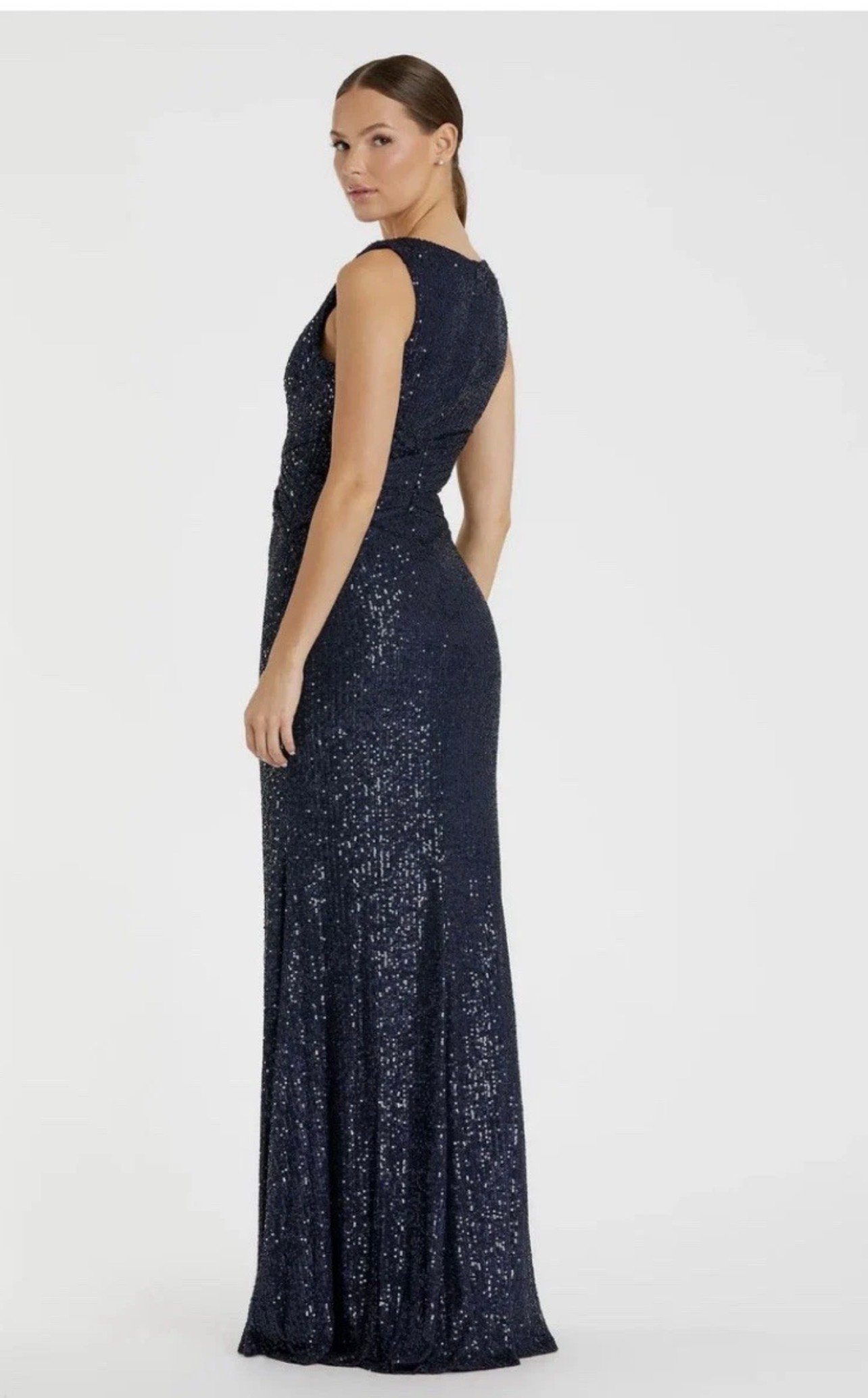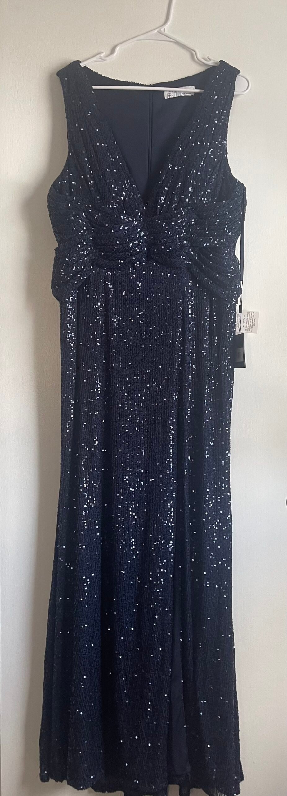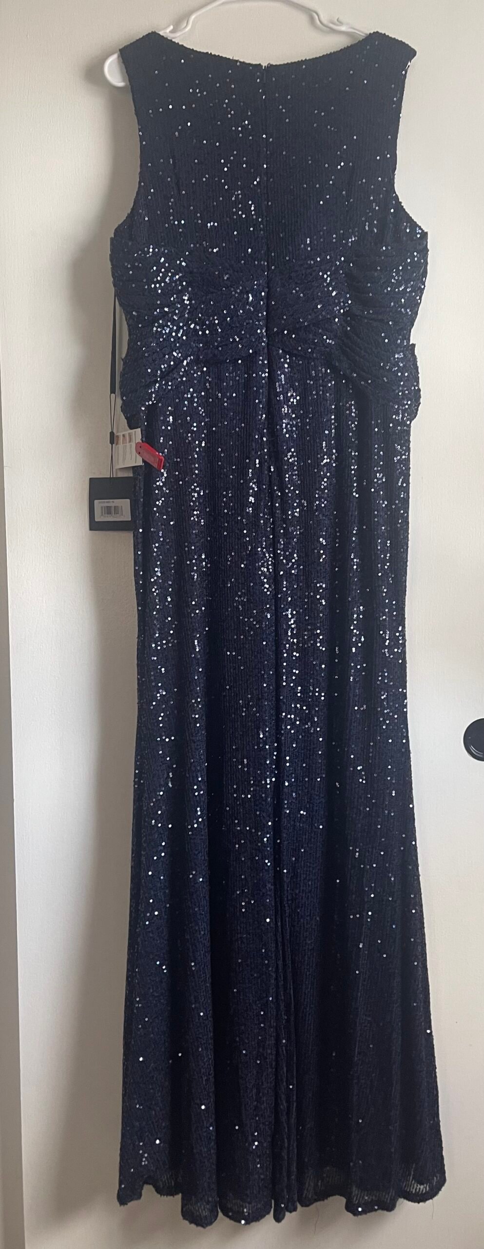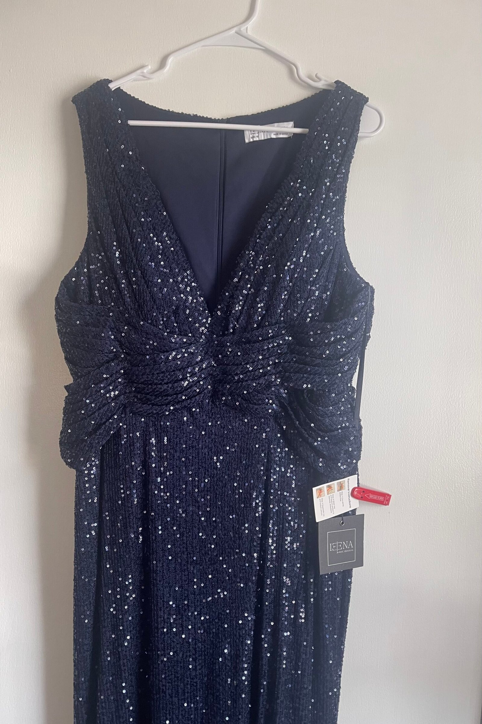 IEENA FOR MAC DUGGAL 26598 Sz 16 Navy V-Neck Sequin Wrap Waist Gown