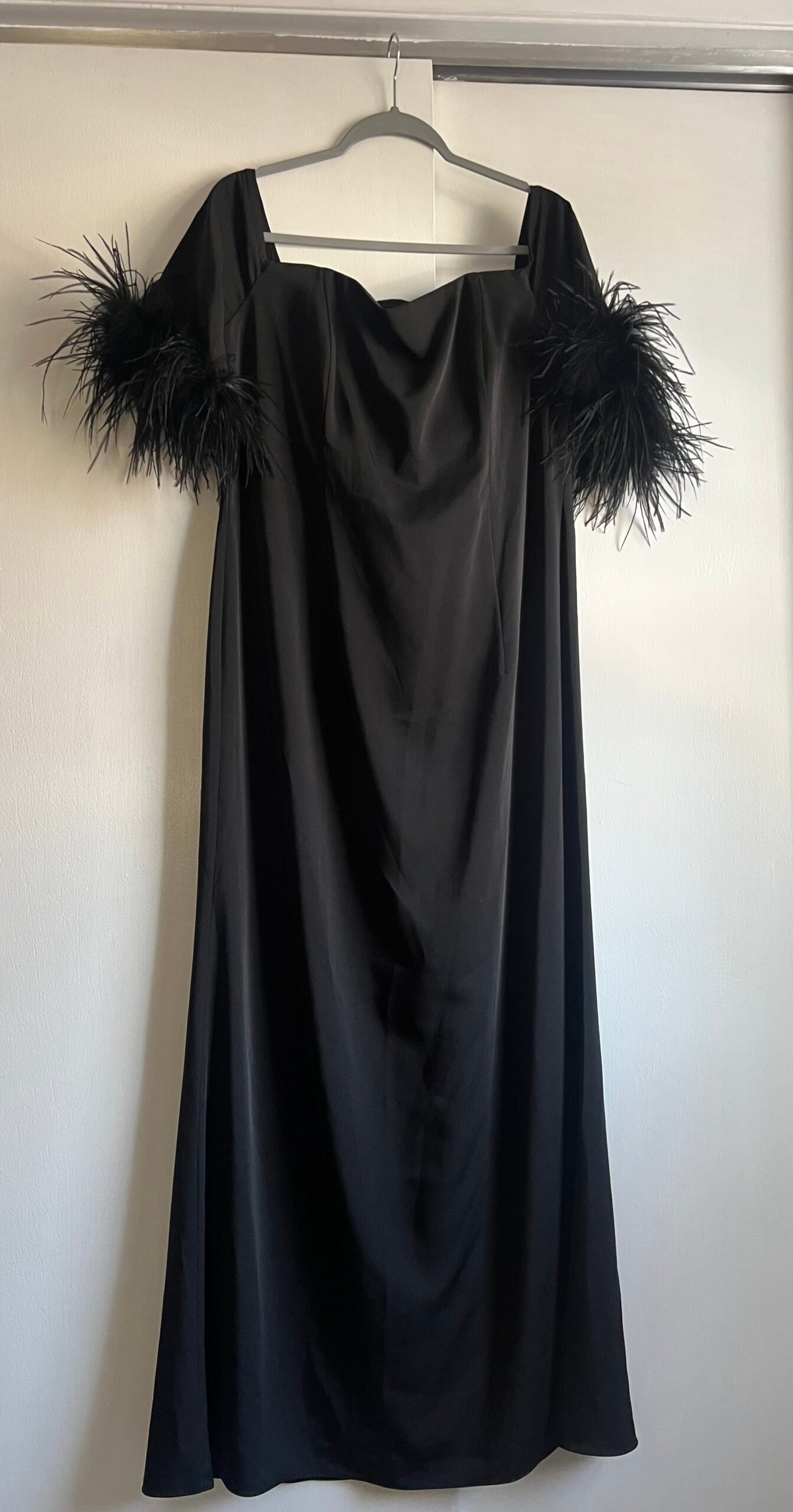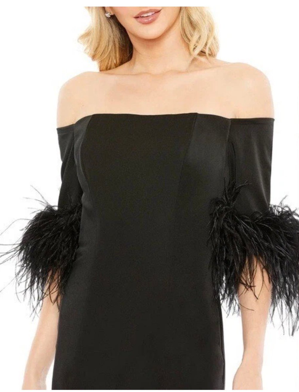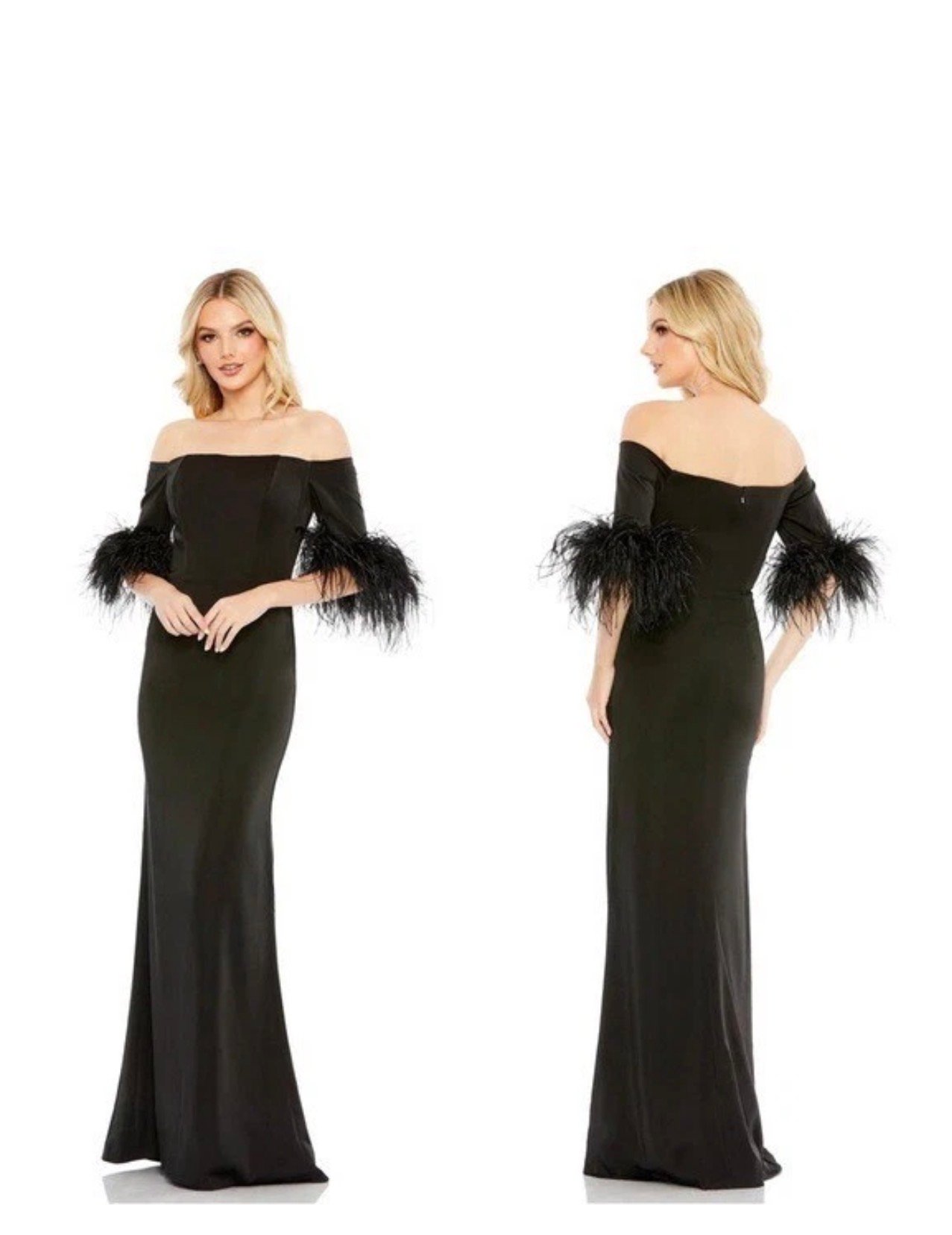 Mac Duggal 11441 feather trim off shoulder gown size 12