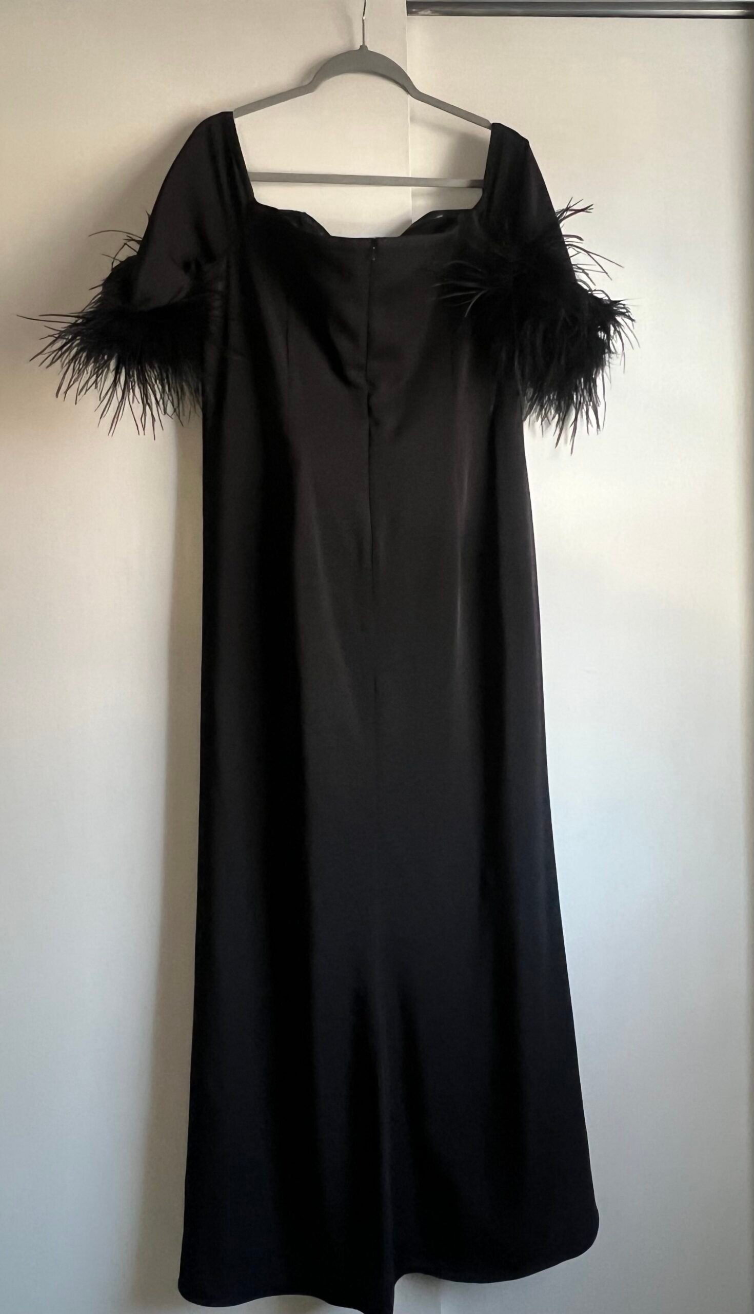 Be the first to review “Mac Duggal 11441 feather trim off shoulder gown size 12”