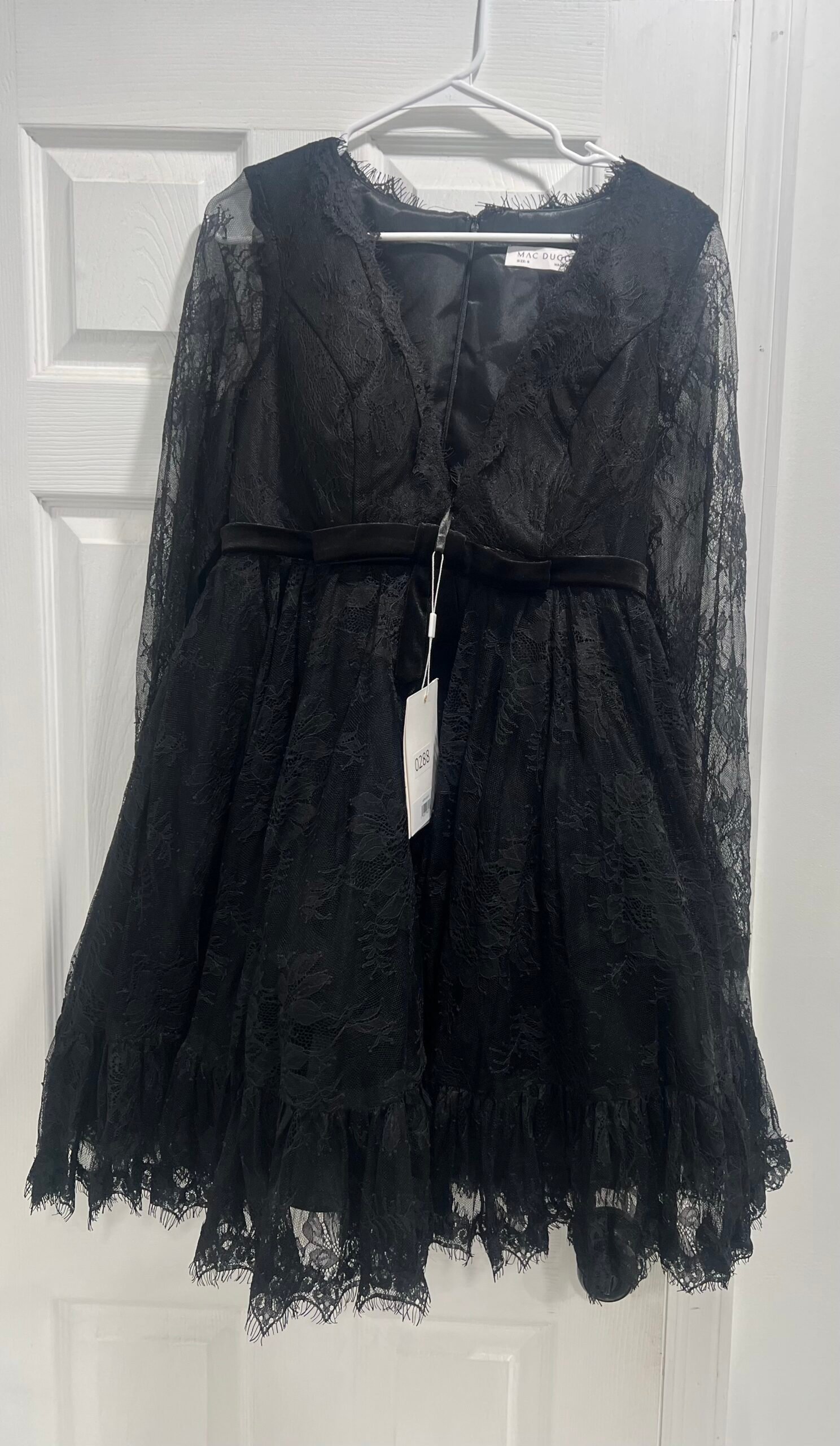 Be the first to review “Mac Duggal 49794 size 8 black long sleeve lace babydoll dress”