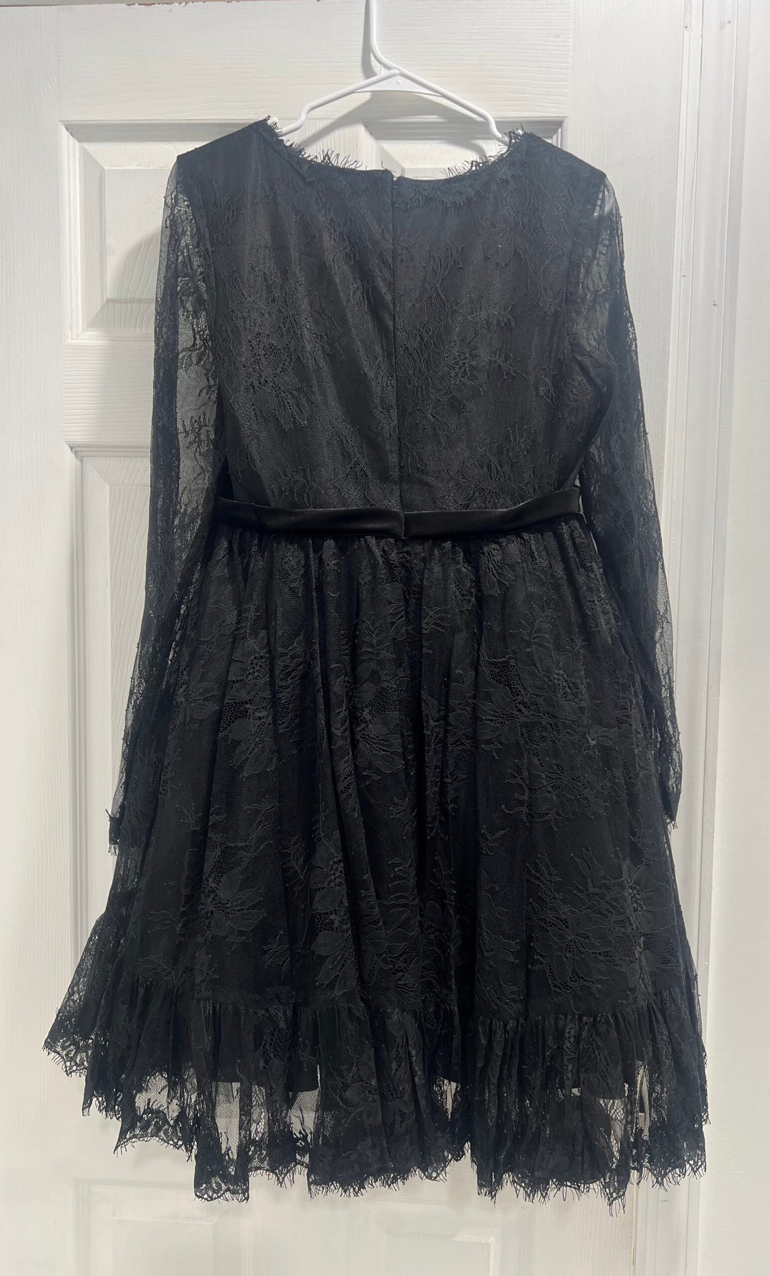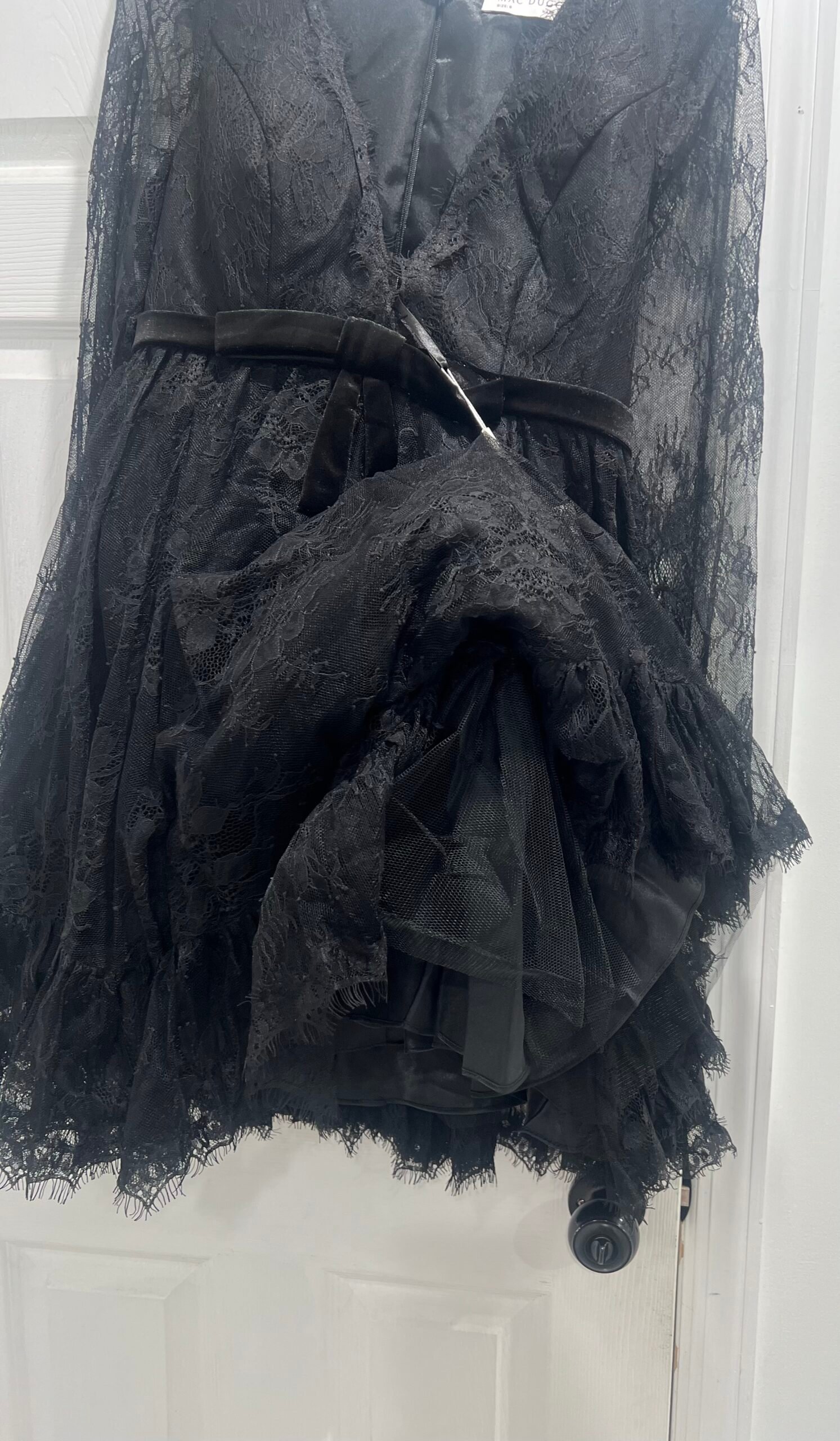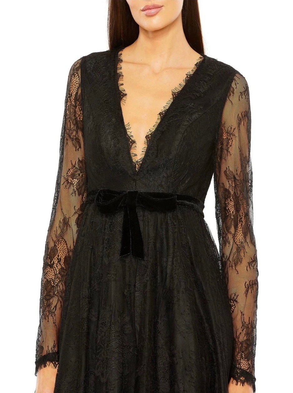 Mac Duggal 49794 size 8 black long sleeve lace babydoll dress