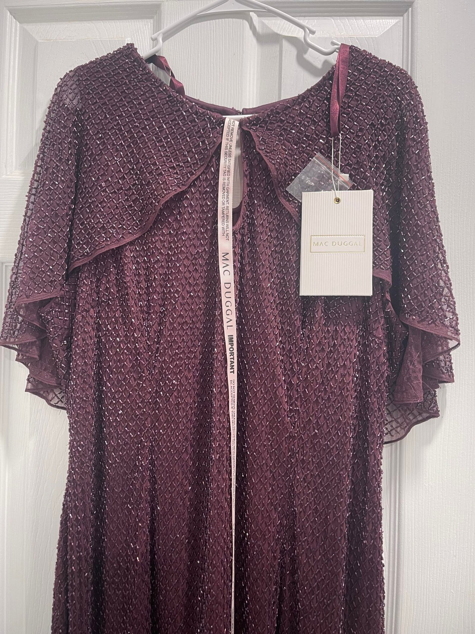 MAC DUGGAL 5948 Beaded Cape Sleeve Gown Amethyst Size 18W Formal Wedding
