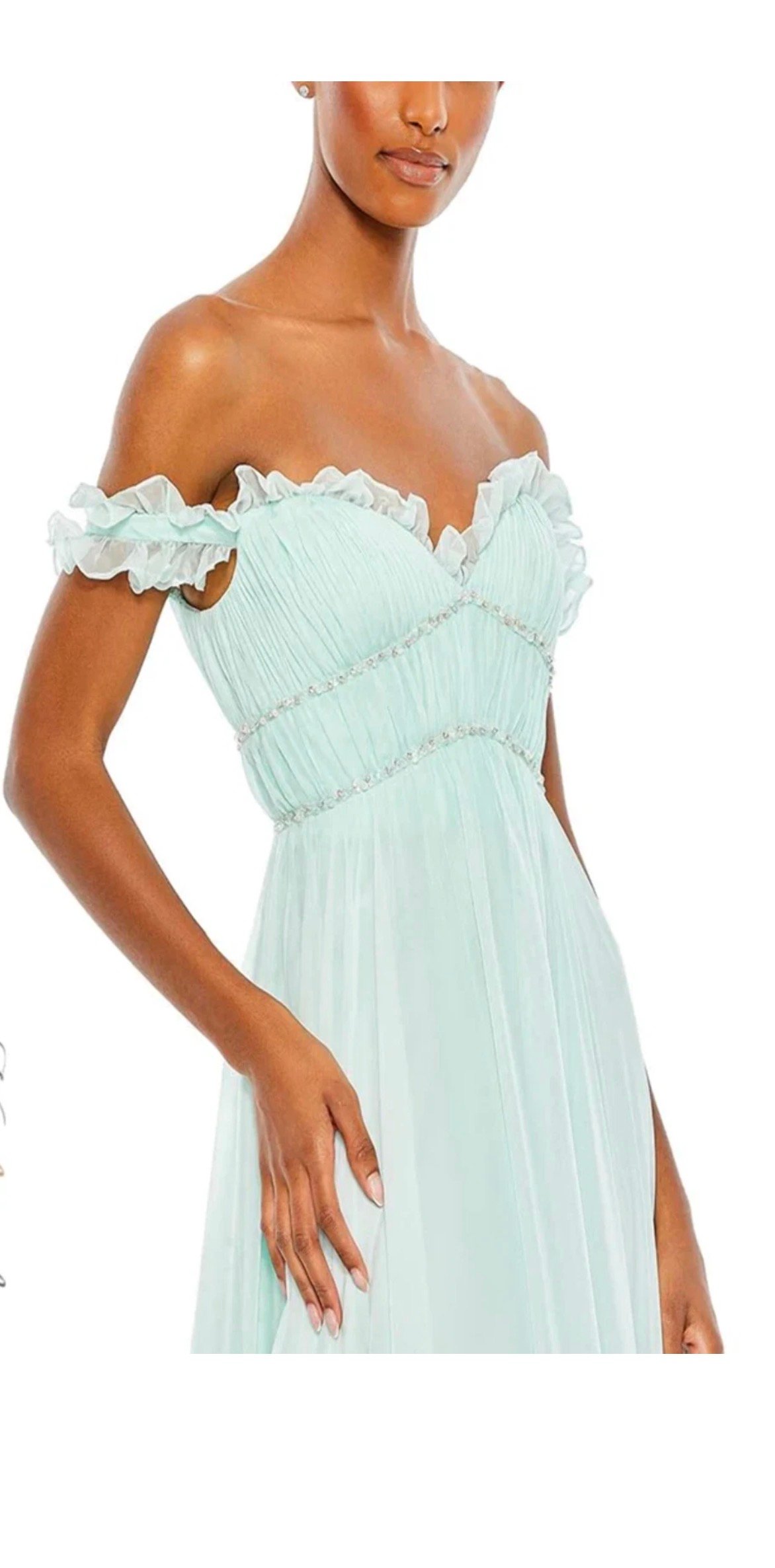 Be the first to review “Mac Duggal 68086 Mint Green Sz 8 Ruffle Tiered Babydoll Flowly Gown”
