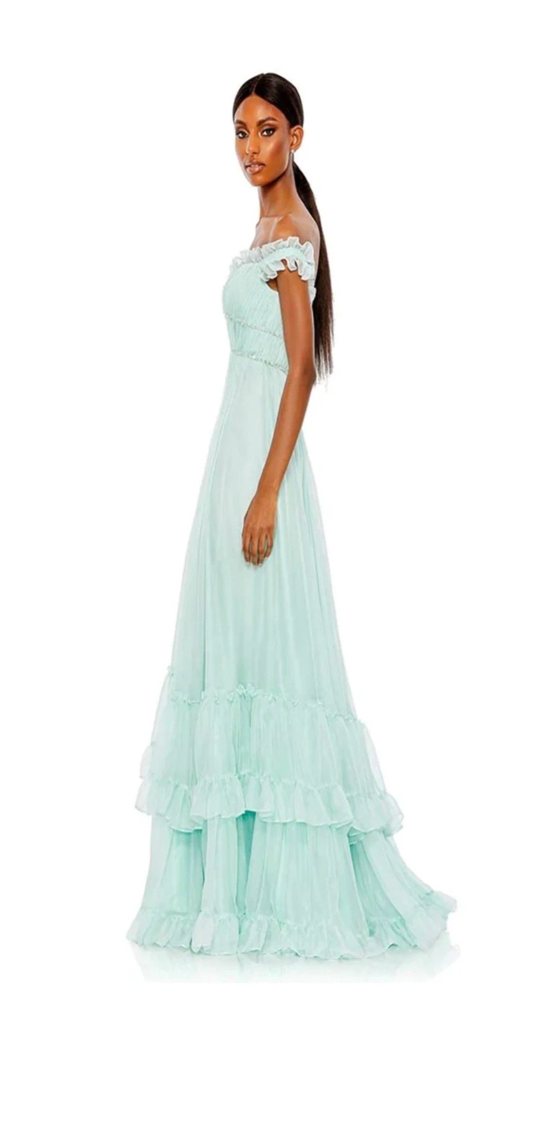 Mac Duggal 68086 Mint Green Sz 8 Ruffle Tiered Babydoll Flowly Gown