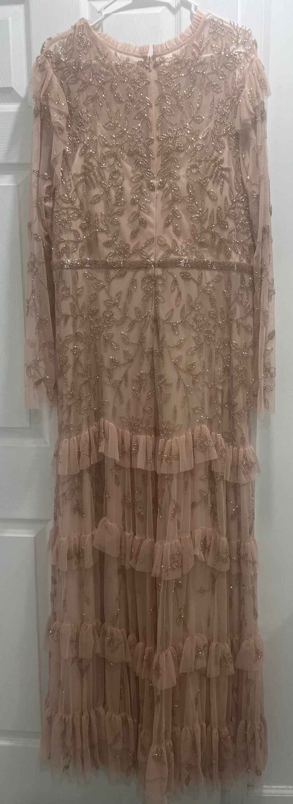 Mac Duggal 9237 Sz 22 Blush Beaded Tulle Formal Gown Long Sleeve