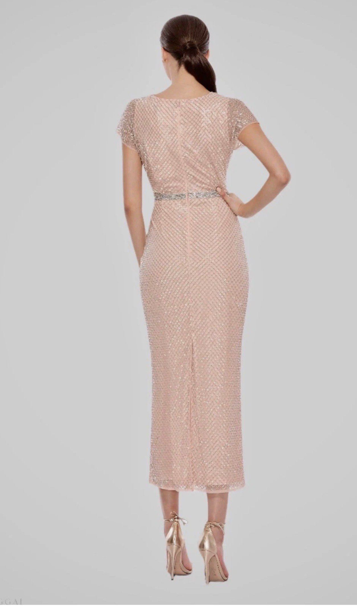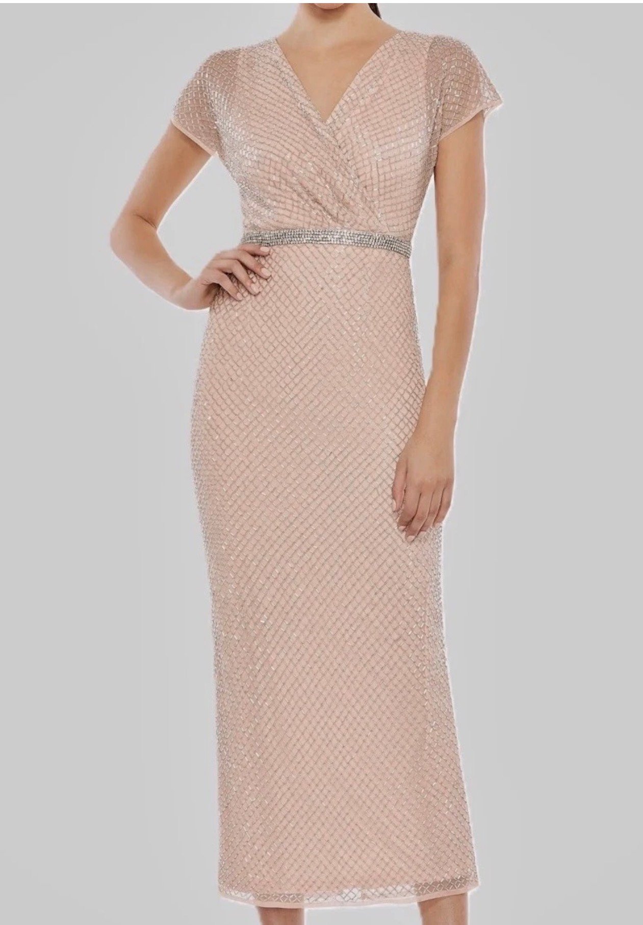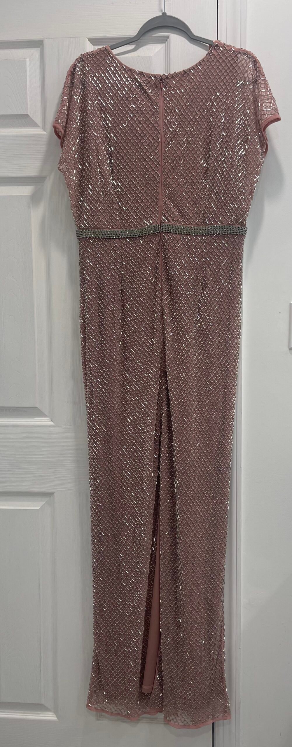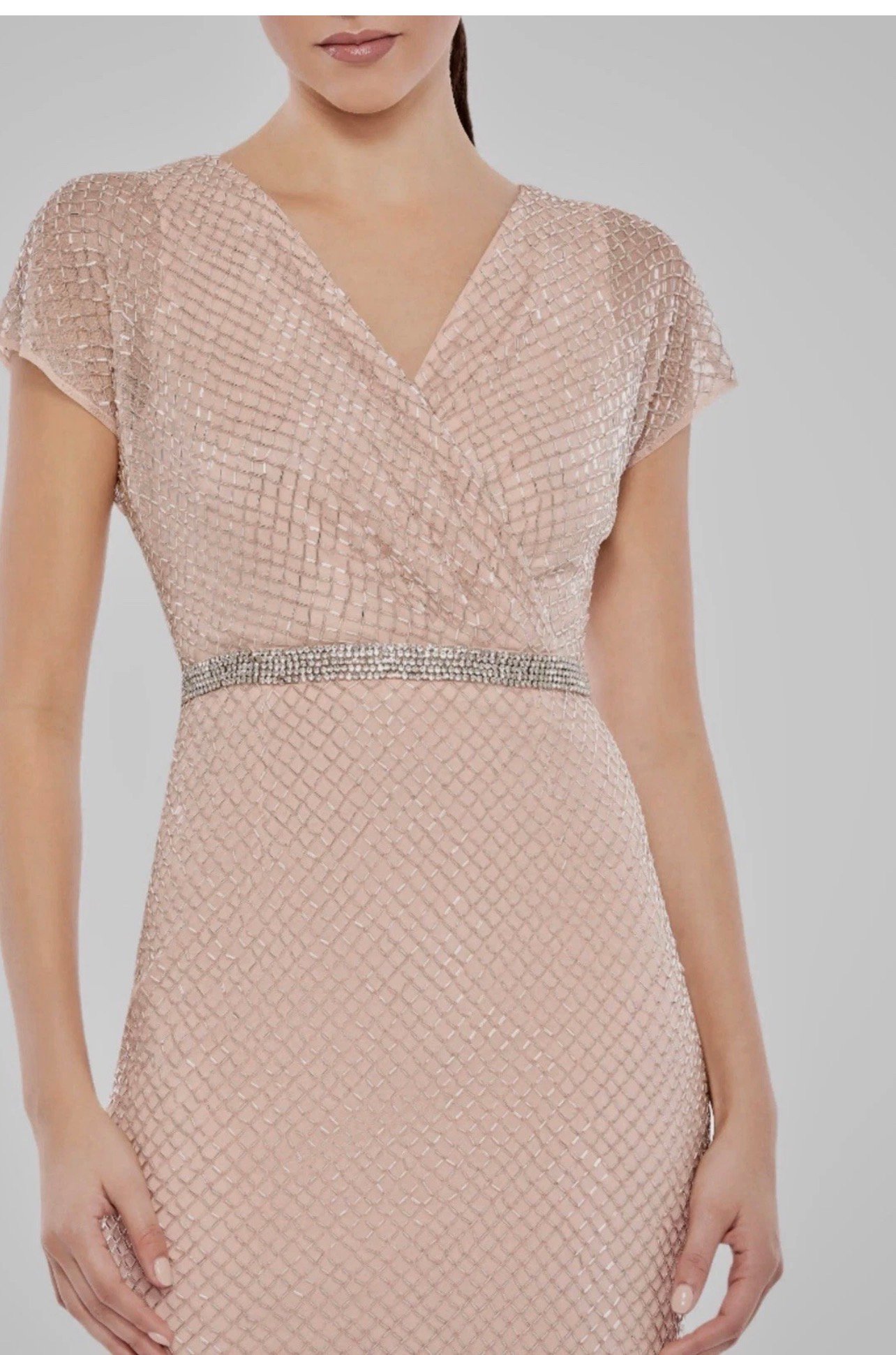 Mac Duggal 93787 Pink Beaded Rhinestone Wrap Long Dress Sz 16 V-Neck Cap Sleeve
