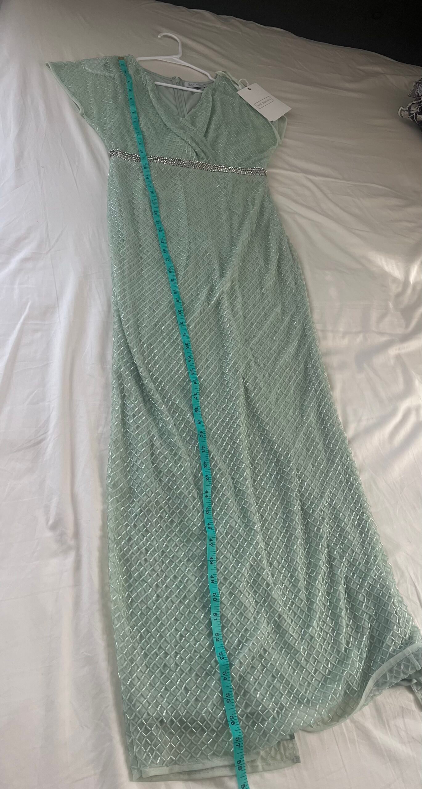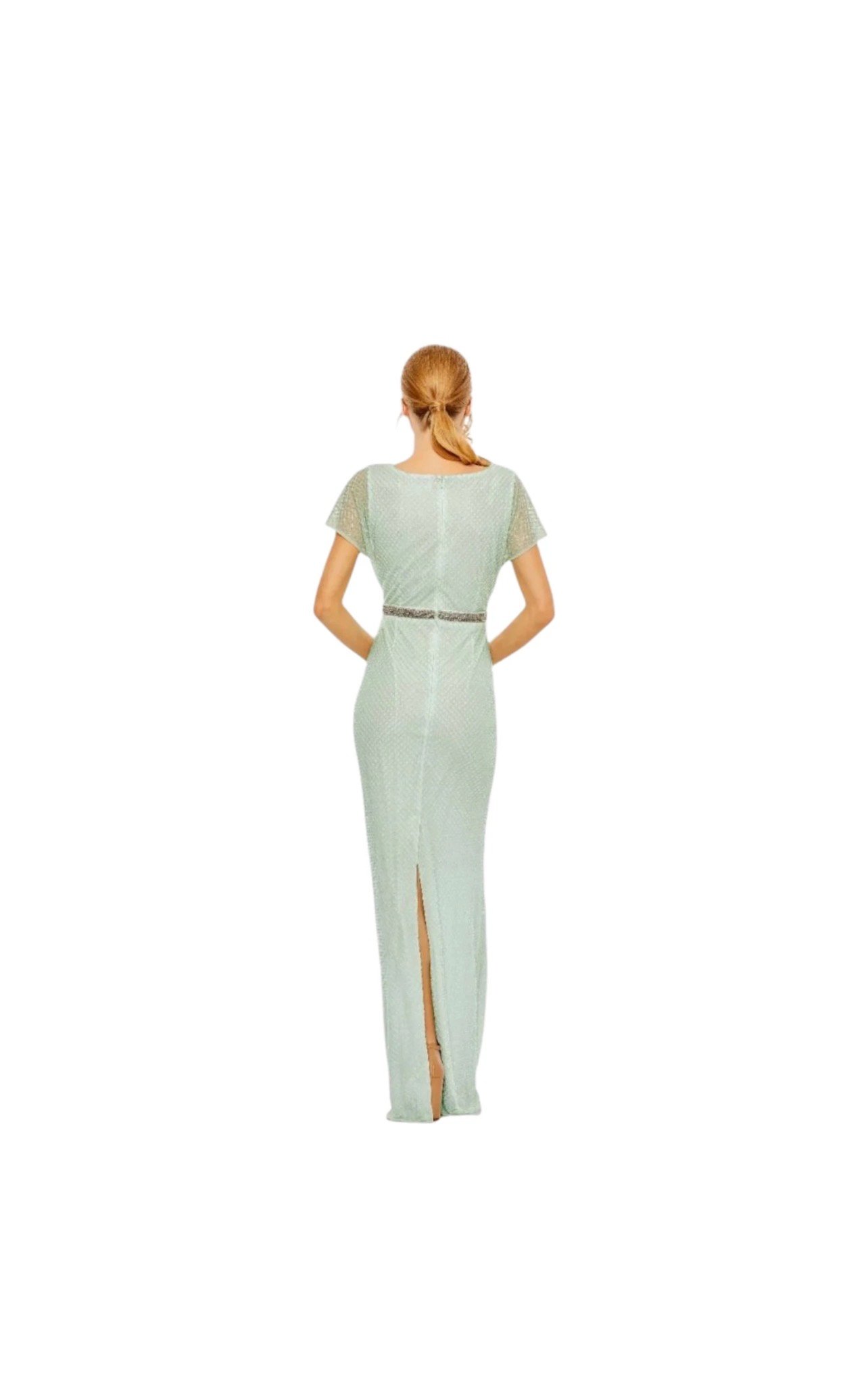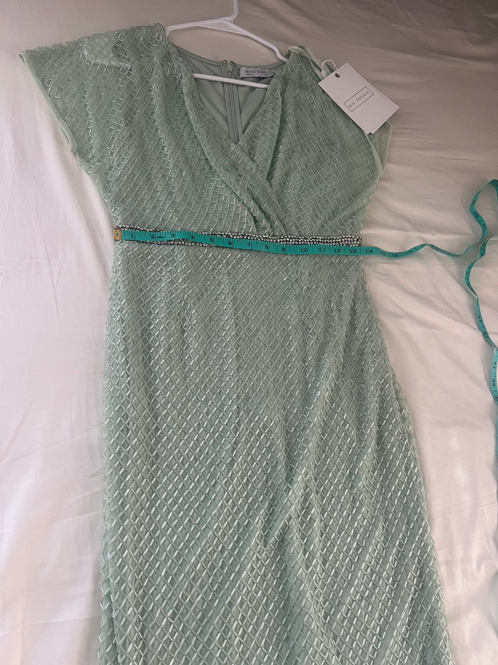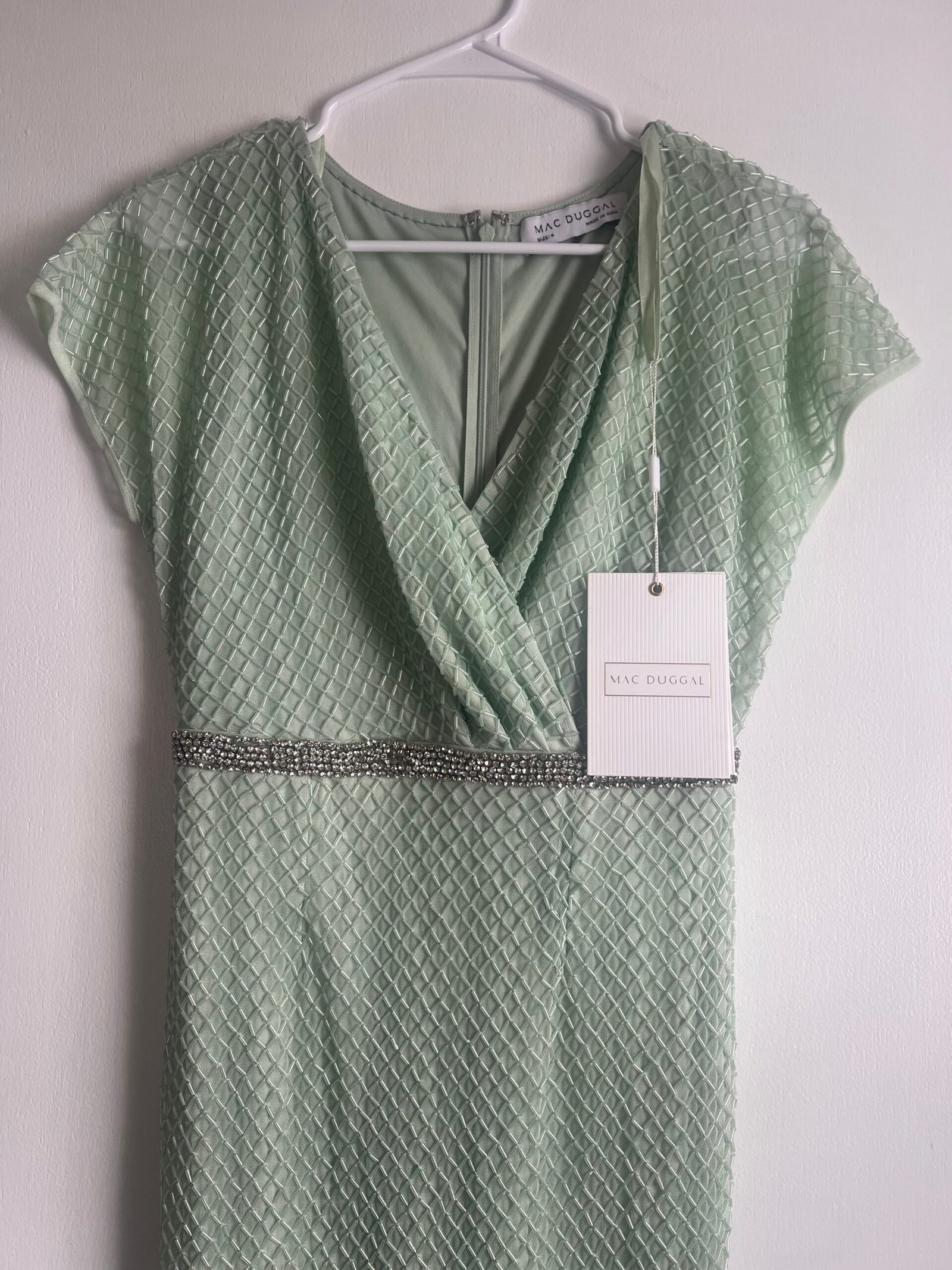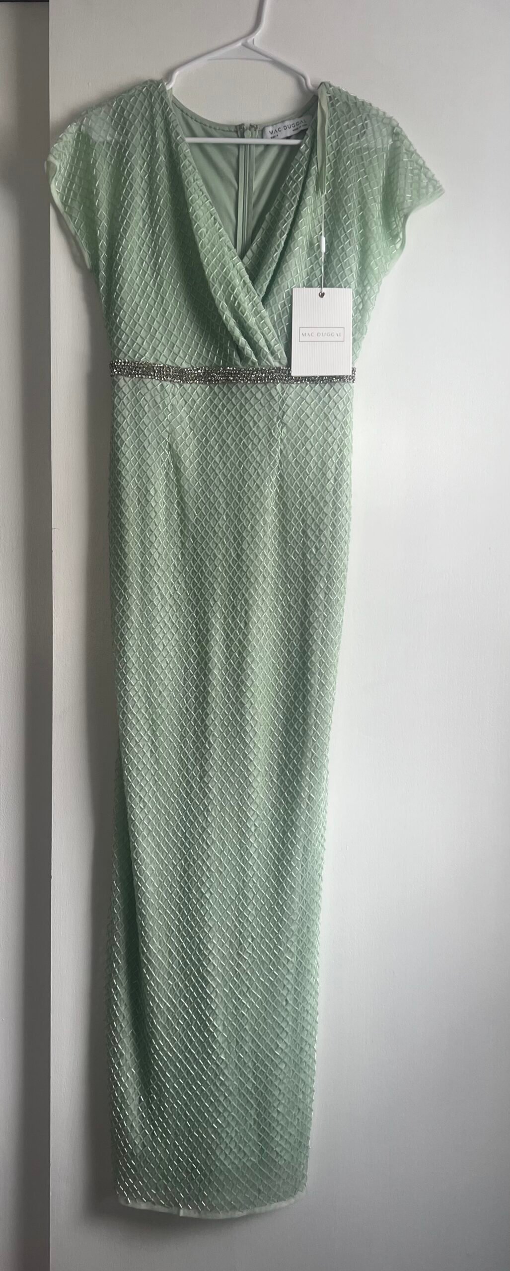 Mac Duggal 93994 Sage Green 4 Beaded Wrap Short Sleeve Formal Gown Maxi