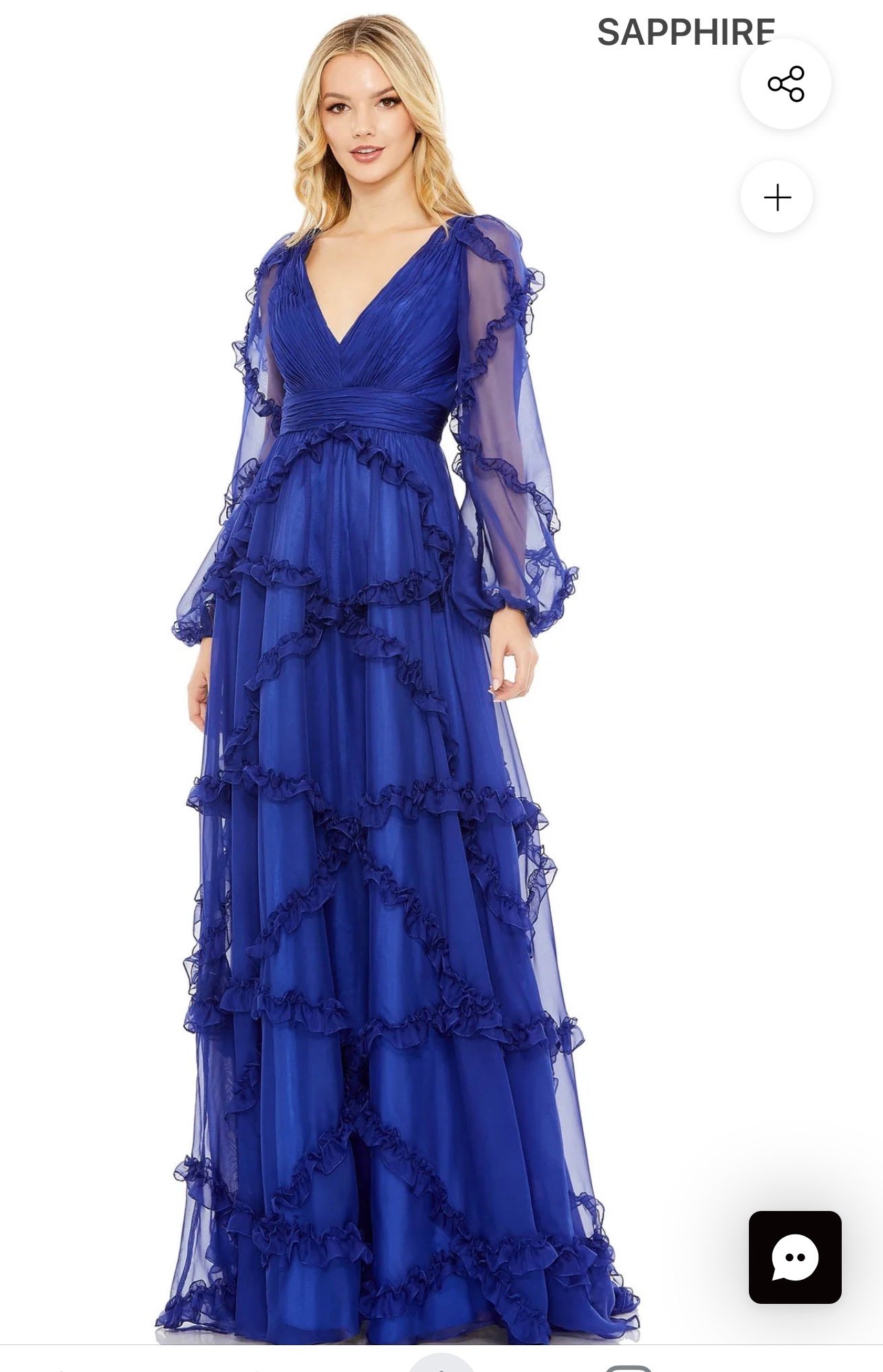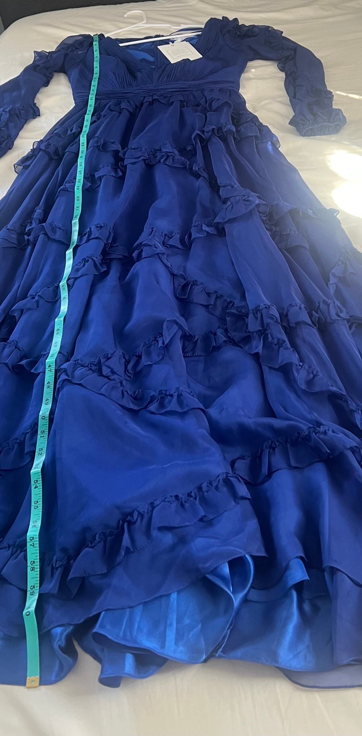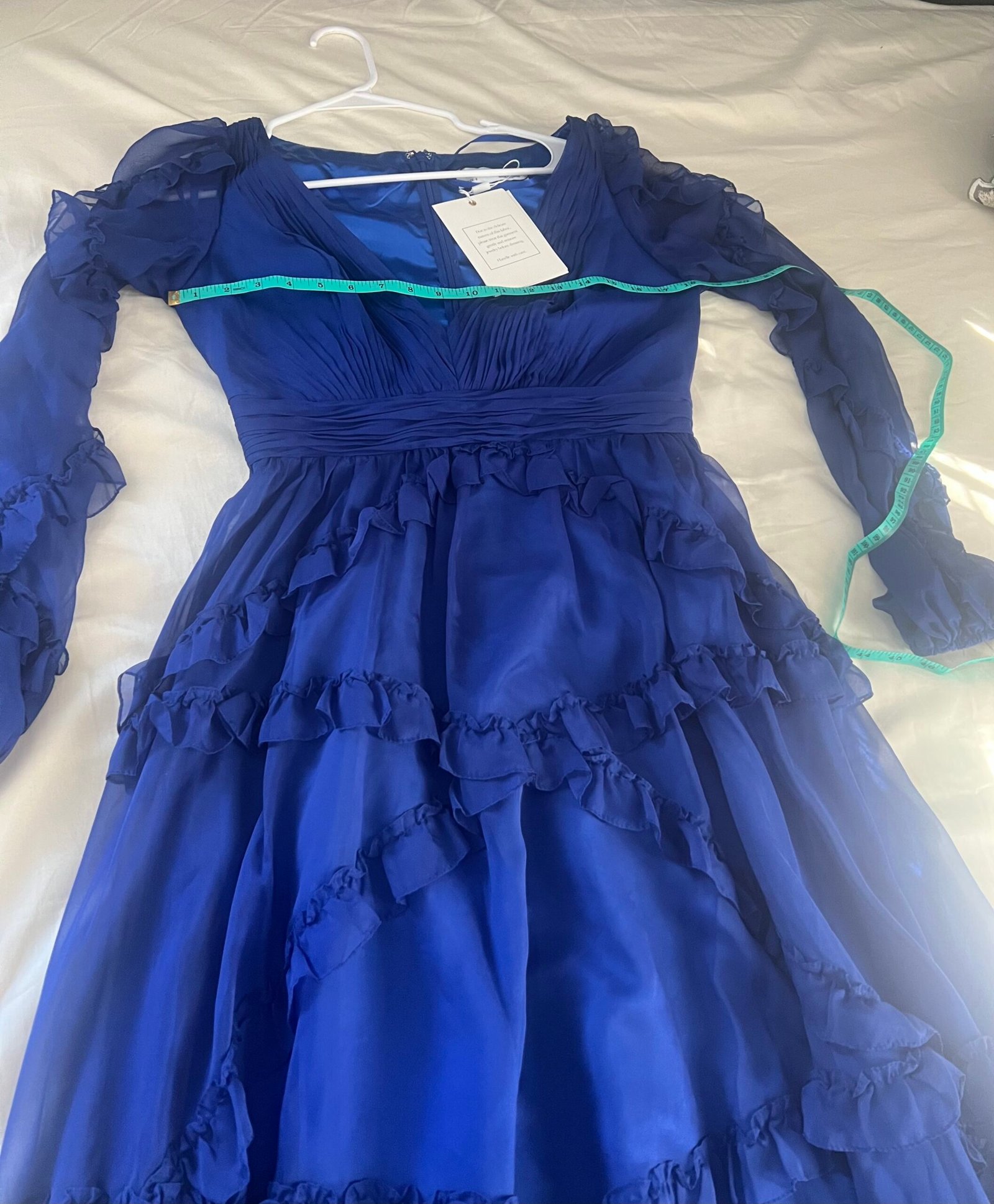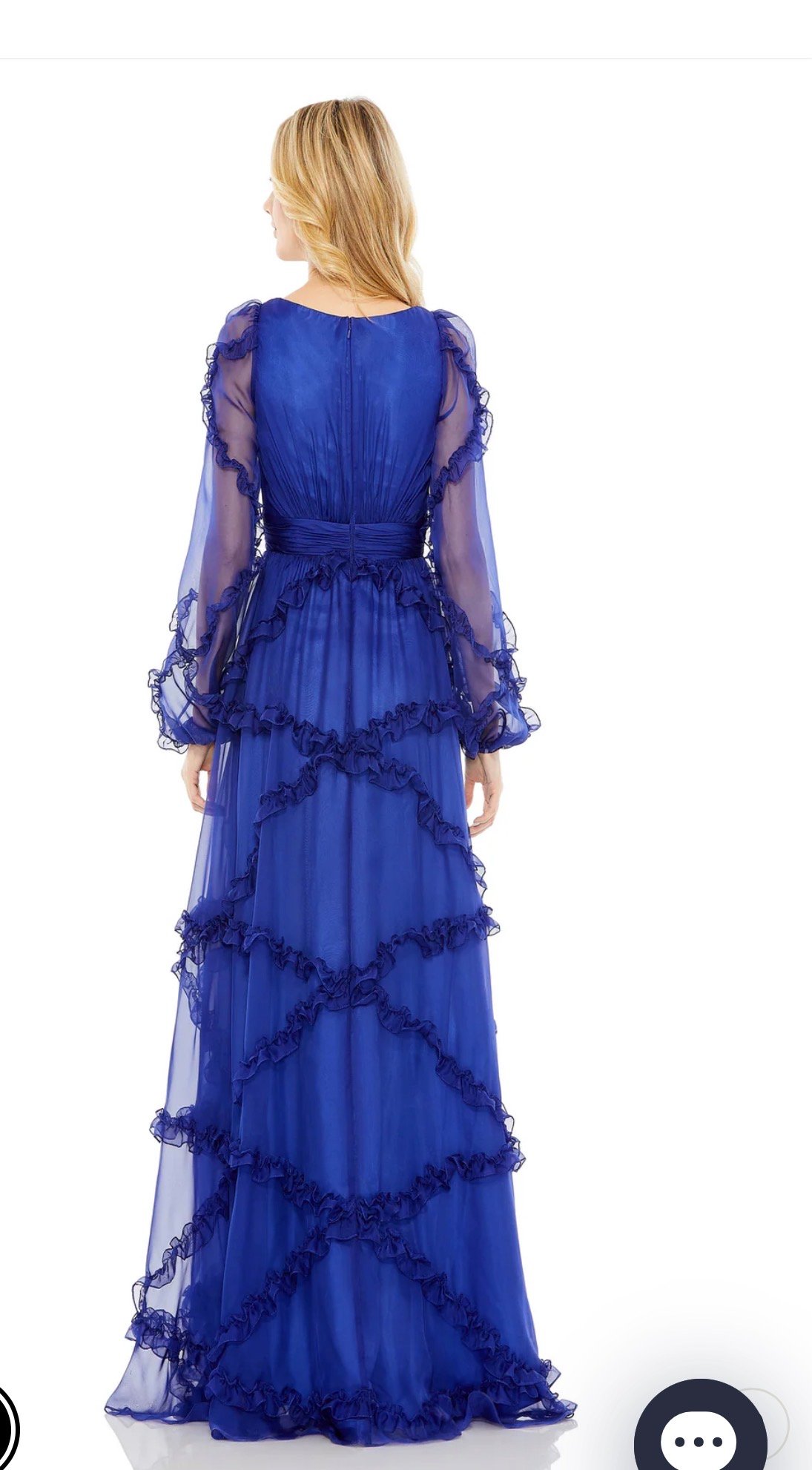 Be the first to review “Mac Duggal Ruffle Puff Sleeve A Line Gown #68223 Blue Size 8 NWT”